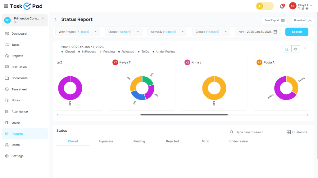 You cannot manage what you do not measure. TaskOPad’s Reporting module creates data-driven insights. You can see project progress and team performance. It also tracks overdue tasks. These reports turn raw activity into a clear strategy for informed decisions.