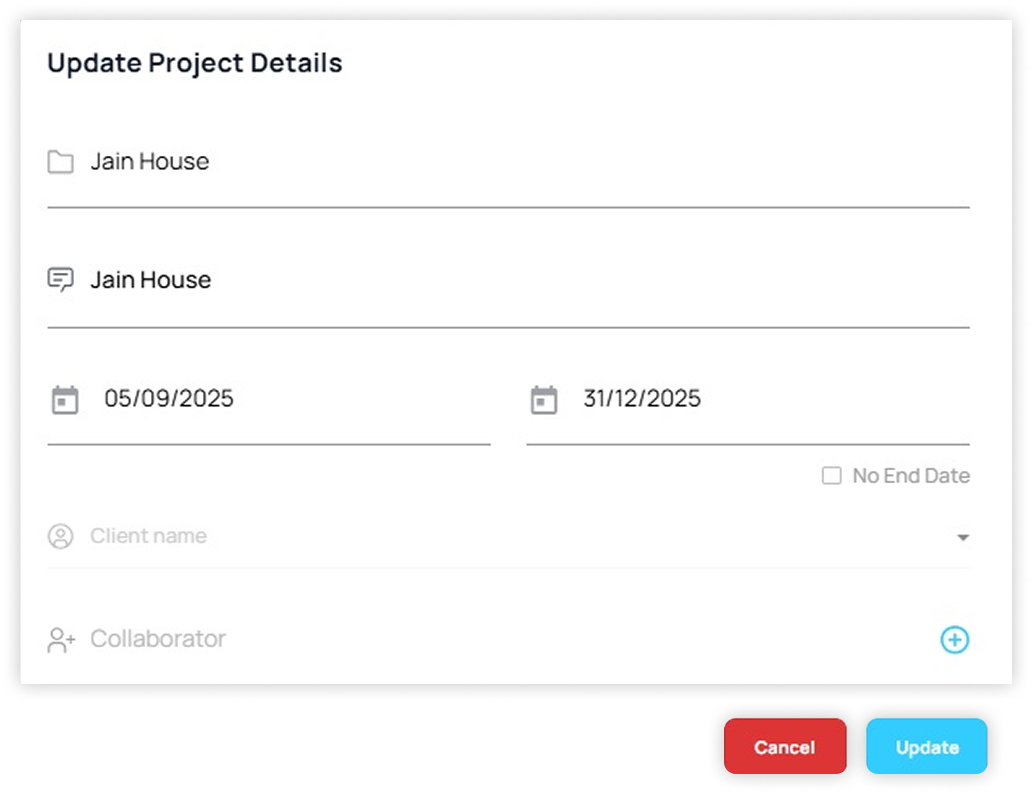 - Create master projects (e.g., “ABC Towers Phase 2”)