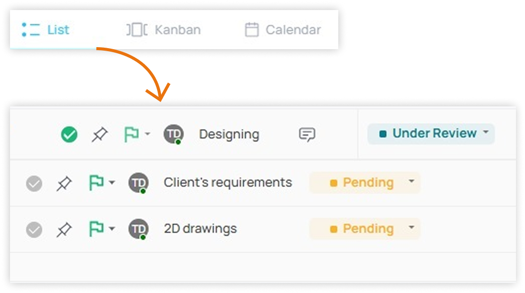 - Create workflows from task-to-subtask or Task to Task as well (e.g., draft → review → client approval)